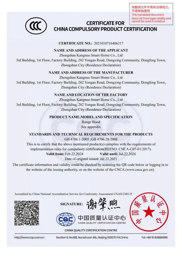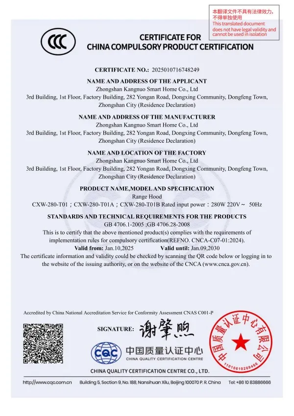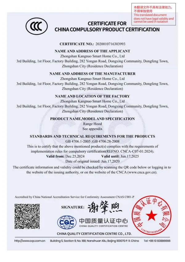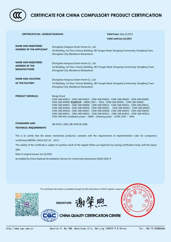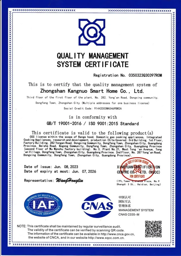ООО Чжуншань Конно Умный Дом расположено в поселке Дунфэн города Чжуншань провинции Гуандун. Основанная в 2011 году, компания является ведущим предприятием в Китае в сфере интегрированной кухонной техники, объединяющим исследования и разработки, производство и продажи. Она специализируется на исследовании, производстве и продаже вытяжек, газовых варочных панелей и другой продукции. Контактные данные: Электронная почта: kangnuo_KK@outlook.com Компания обладает современным производственным комплексом площадью более 100 000 кв. м, оснащенным передовыми производственными линиями, высокотехнологичным оборудованием и сертифицированной по международным стандартам лабораторией. Лаборатория обеспечивает точную поддержку в разработке продукции и контроле качества, гарантируя ее соответствие международным нормам. Кроме того, наличие собственного завода по производству металлических комплектующих позволяет осуществлять строгий контроль качества на исходном этапе, обеспечивать стабильность характеристик готовых изделий, а также сокращать циклы поставок и снижать издержки. Это создает надежную основу для гибкого изготовления под заказ и масштабного серийного производства, укрепляя фундамент качества продукции.